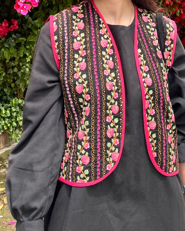 جنس لینن سوزن دوزی و پولک دوزی قد۵۰ نوار دوزی کتان سرخابی و کاملا لایی کوبی شده و فول سوزن دوزی فری سایز تا۴۴