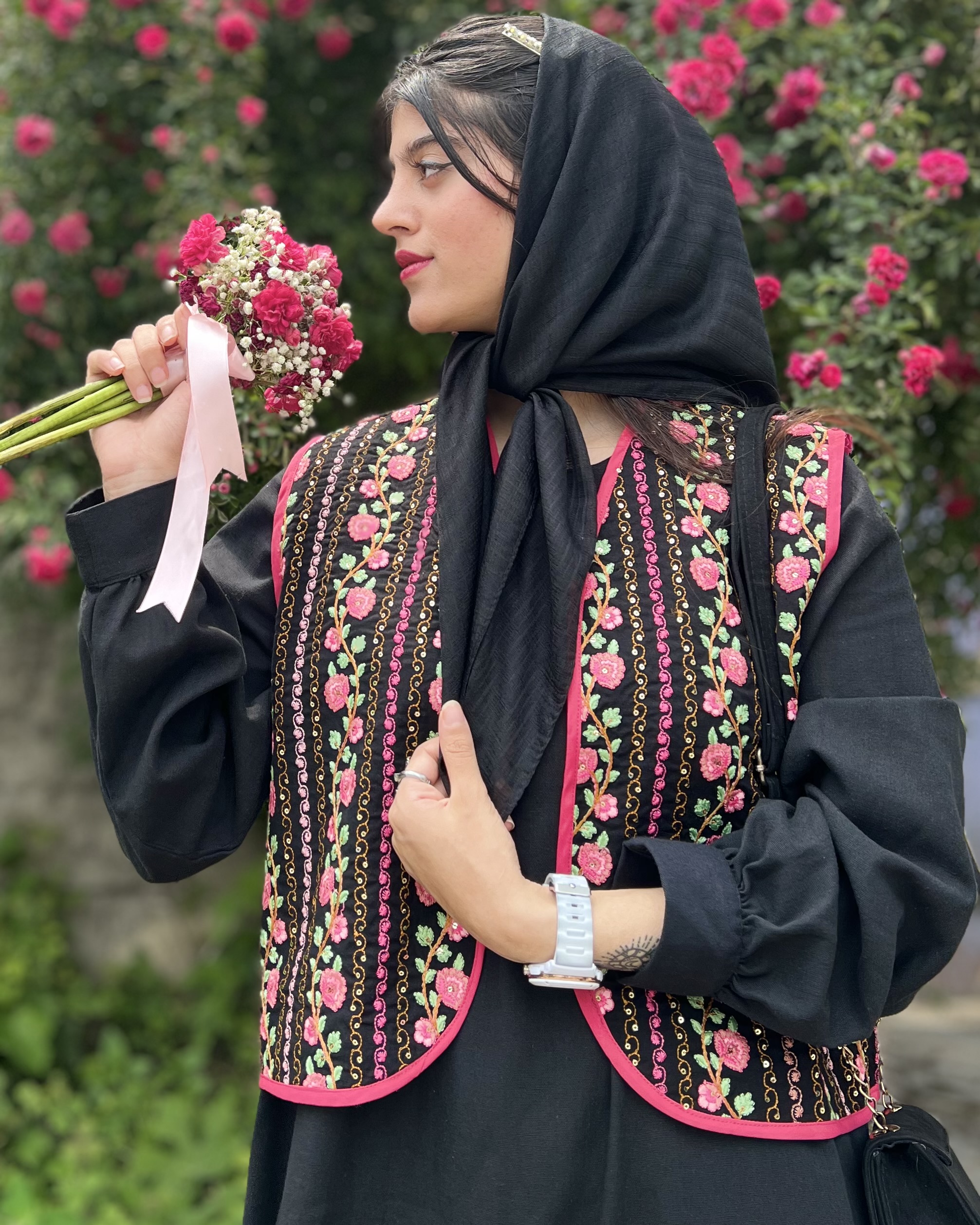 جنس لینن سوزن دوزی و پولک دوزی قد۵۰ نوار دوزی کتان سرخابی و کاملا لایی کوبی شده و فول سوزن دوزی فری سایز تا۴۴