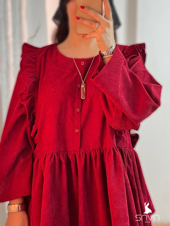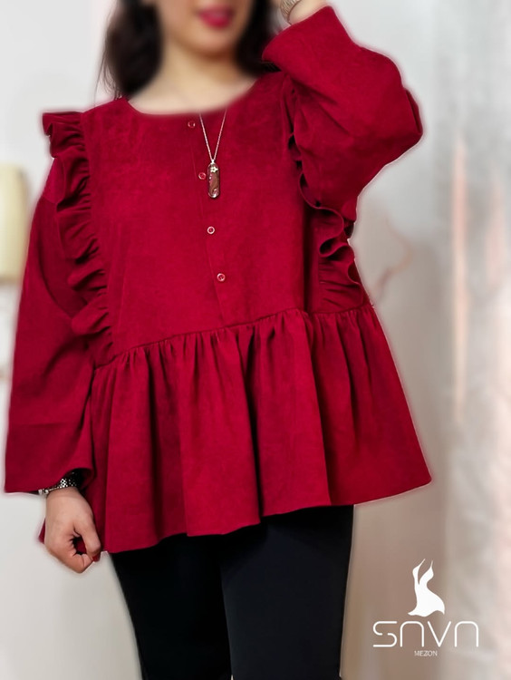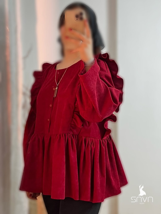 شومیز یاقوت از اون لباساست که نه داد میزنه، نه توضیح اضافه میخواد… خودش کارشو میکنه. مخمل کبریتی گرم و نرم قد حدوداً ۷۰.